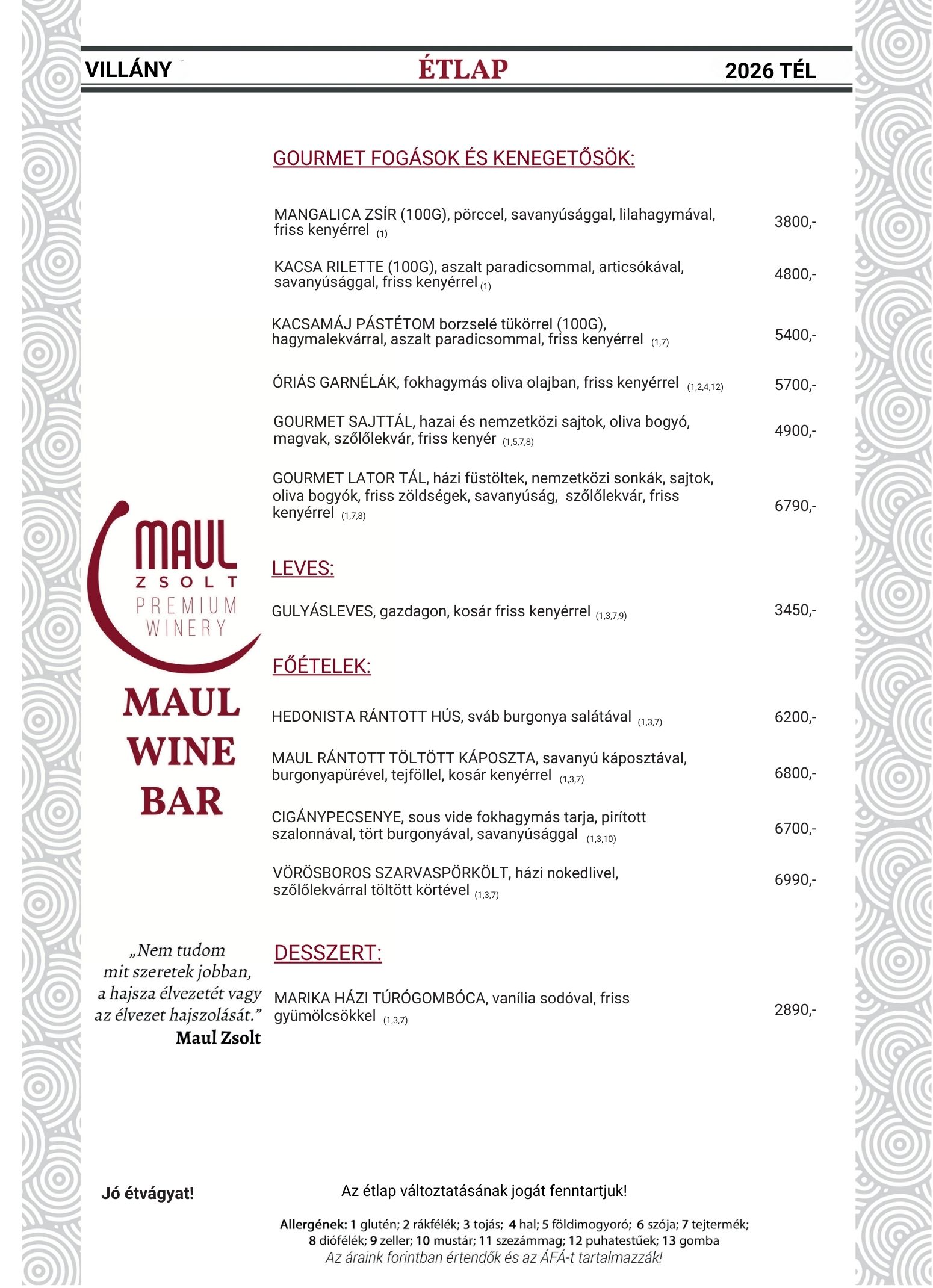 - 2 Premium tétel az étteremben (Maul Wine Bar)